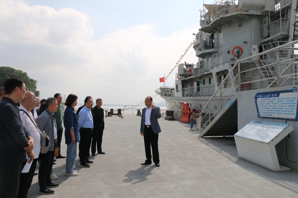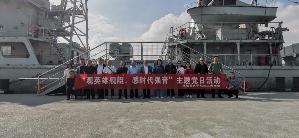 5月24日,继续教育学院教工党支部在九江舰开展“观英雄舰艇,感时代强音”主题党日活动。九江舰原副政委(代理政委)胡仁星应邀参加活动,并作现场讲解。