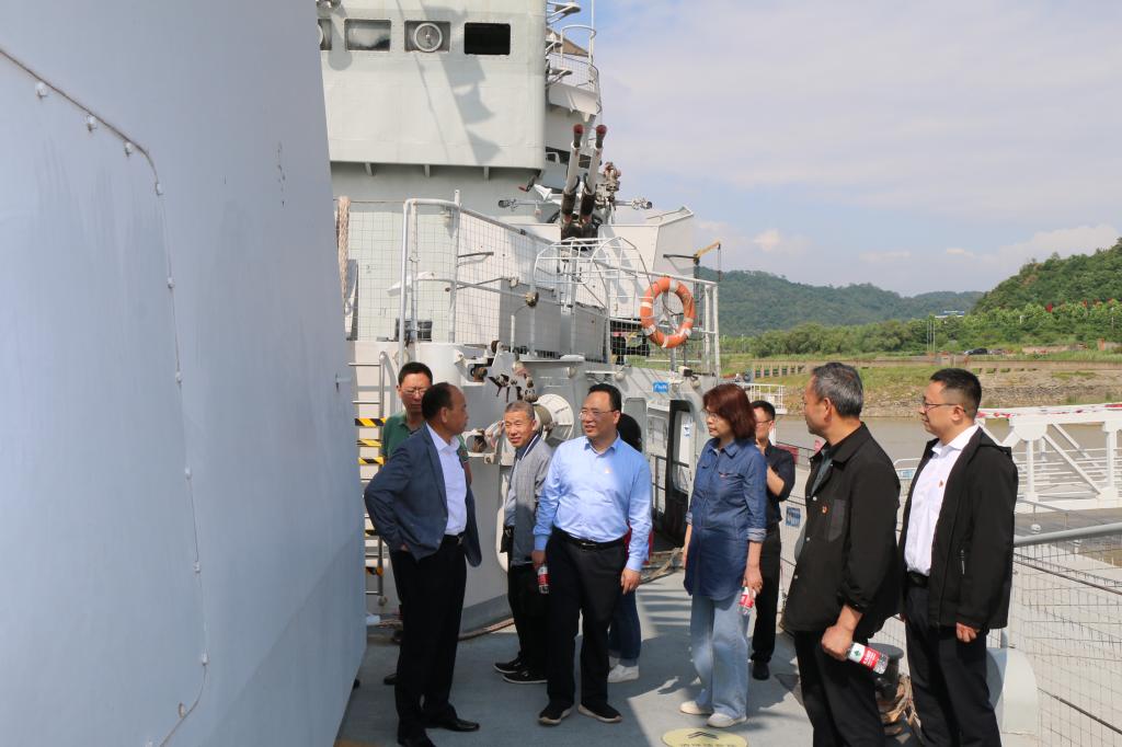 胡仁星详细介绍了“九江舰”的服役历史、火力配备及战略地位,为全体教工党员上了一趟生动的党课?!熬沤ⅰ狈鬯氖?,多次参加全军、海军、舰队组织的台海演习及海上巡逻、护渔护航等急难险重战备任务,为祖国的海防大业屡建功勋。在胡仁星的带领下,党员同志有序参观了“九江舰”各展区,爬旋梯、登甲板、进舱室,实地体验中国军舰曾经的构造配置和海军官兵的艰苦不易?!氨<椅拦鷧c二载,劈波斩浪铸军魂。恪尽职守功身退,国防教场再出征。”退役不退色,英雄九江舰在国防教育战场上正发挥着积极作用。