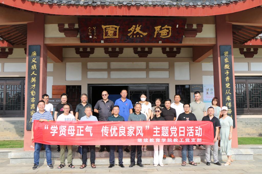 为庆祝建党102周年, 6月29日,继续教育学院组织全院党员和部分校外教学点党员赴柴桑区中华贤母园开展“学贤母正气 传优良家风”主题党日活动。