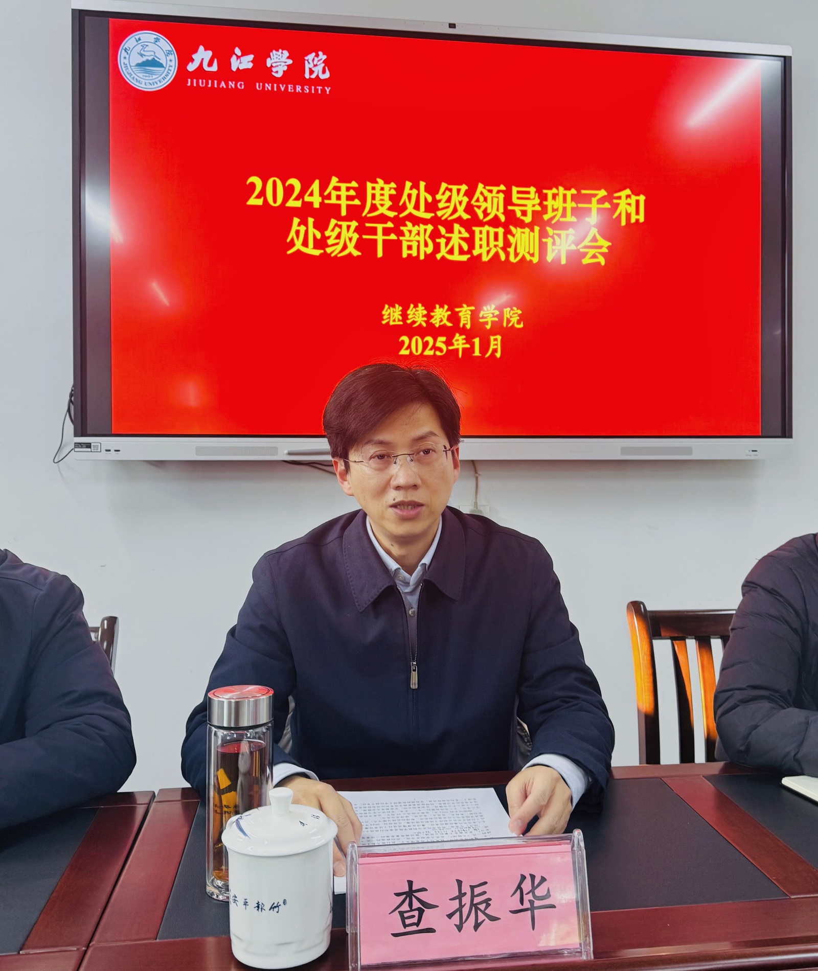 1月10日上午,我院召开处级领导班子和处级干部述职测评会,校党委委员、副校长查振华出席会议并讲话,党政办秘书科科长倪玉平陪同参加。会议由党政办副主任高滨主持。